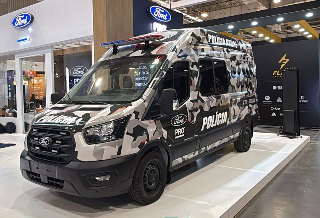 A mostra inclui duas vans Transit, uma delas modificada para transporte de presos com escolta (8+4+2) pela Engesig e outra equipada como plataforma de observação elevada pela Flash. Há também duas picapes Ranger 2.0: uma XL com cabine simples, tração 4×4 e baú de 8,7 m3 equipada como ambulância pela Raytec, e uma XLS com cabine dupla para uso como patrulha, modificada pela Flash. O SUV Territory completa a exposição com duas viaturas de patrulha com cela para detidos, também preparadas pela Raytec e Flash.