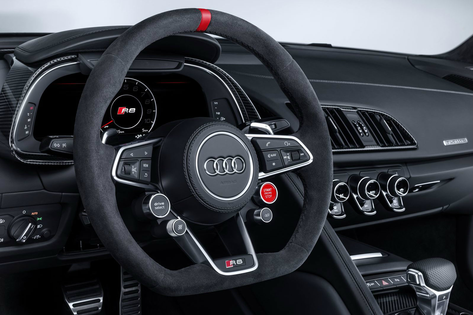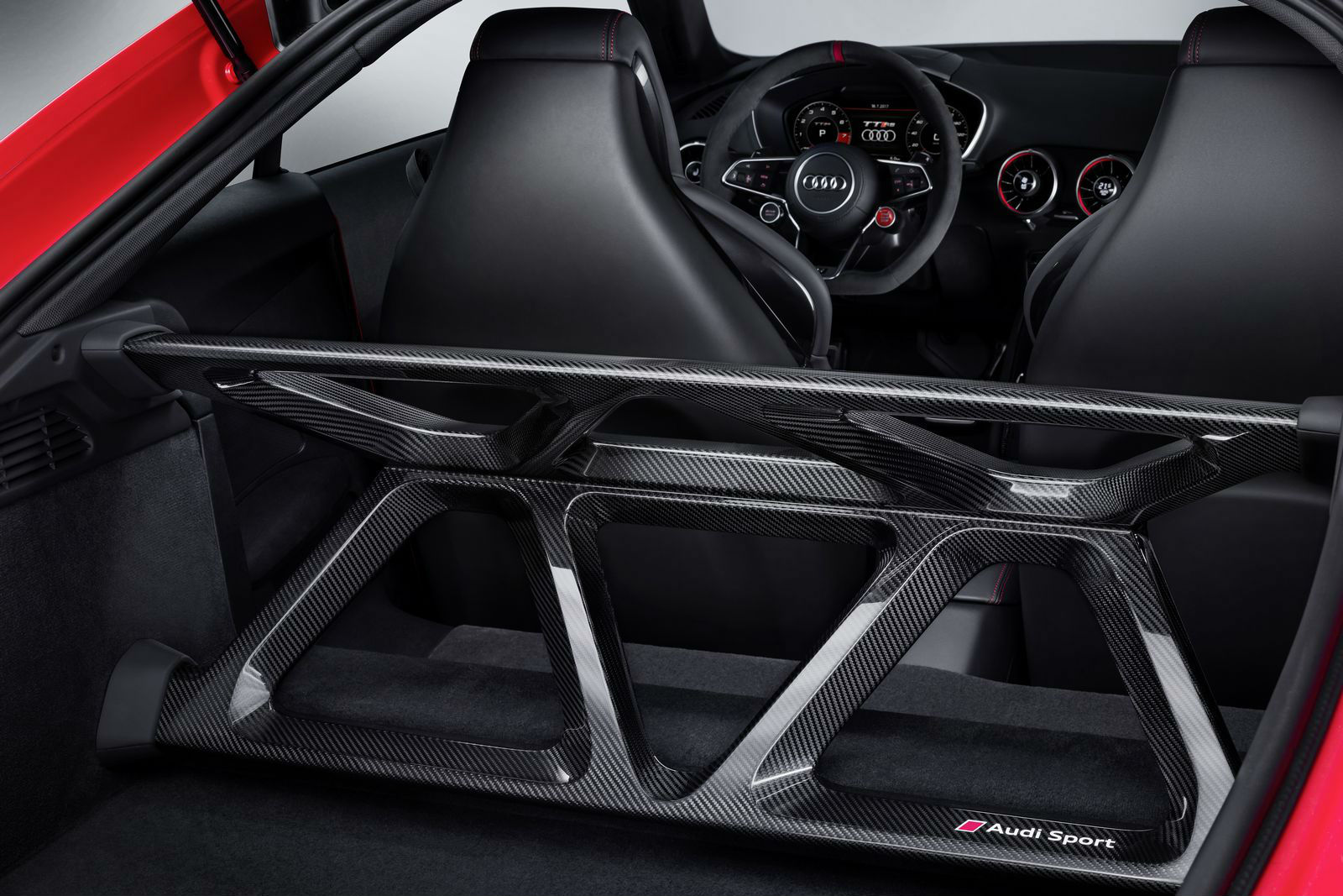 No caso do R8, o superesportivo ainda ganha um aerofólio grandão atrás e rodas de liga leve pretas de 20”. O TT RS pode receber um novo capô, com uma entrada de ar central, também de fibra de carbono.