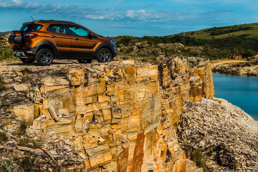 A Ford apresentou o Ecosport Storm, seu SUV compacto que vende bem, obrigado. As versões do Ecosport começam na casa dos R$ 60 mil, mas essa nova 4WD, com câmbio automático de seis velocidades e motor 2.0 Flex com injeção direta de 176 cv 2 20,2 kgfm de força, parte dos R$ 99.990 mil. É dinheiro, sim, mas trata-se de uma versão bem equipada. Disponível em quatro cores, branco, preto, prata e Marrom Trancoso (esse das fotos), o jipinho se mostrou honesto no rolê que demos pelo interior de São Paulo.