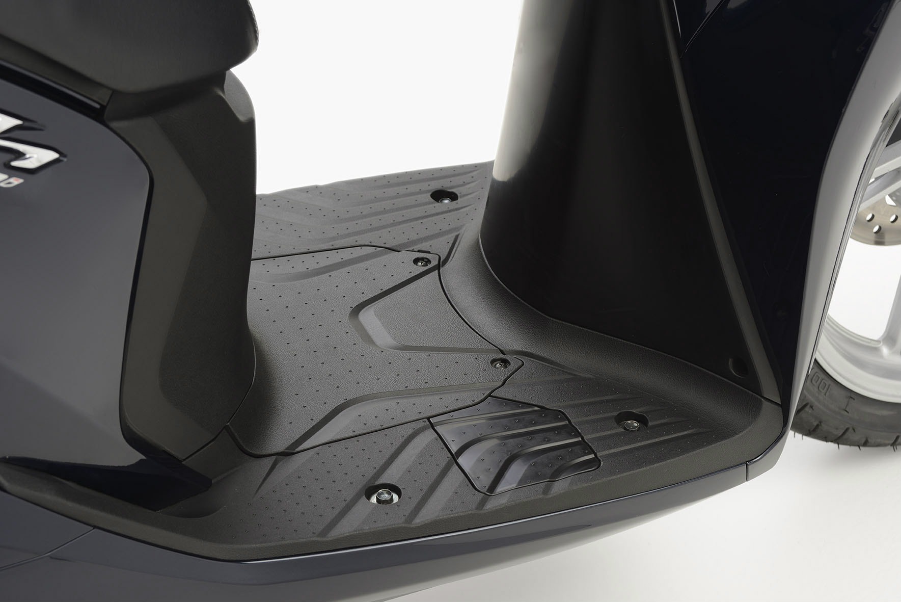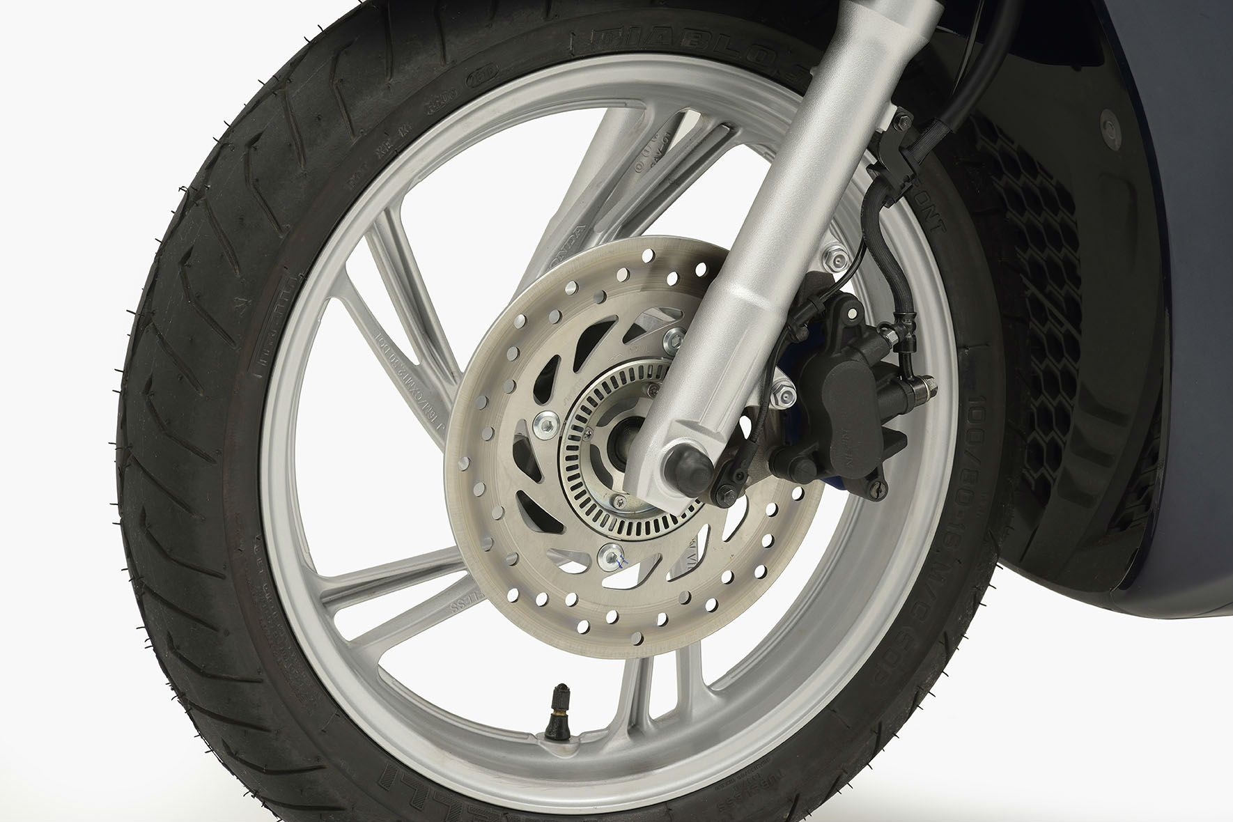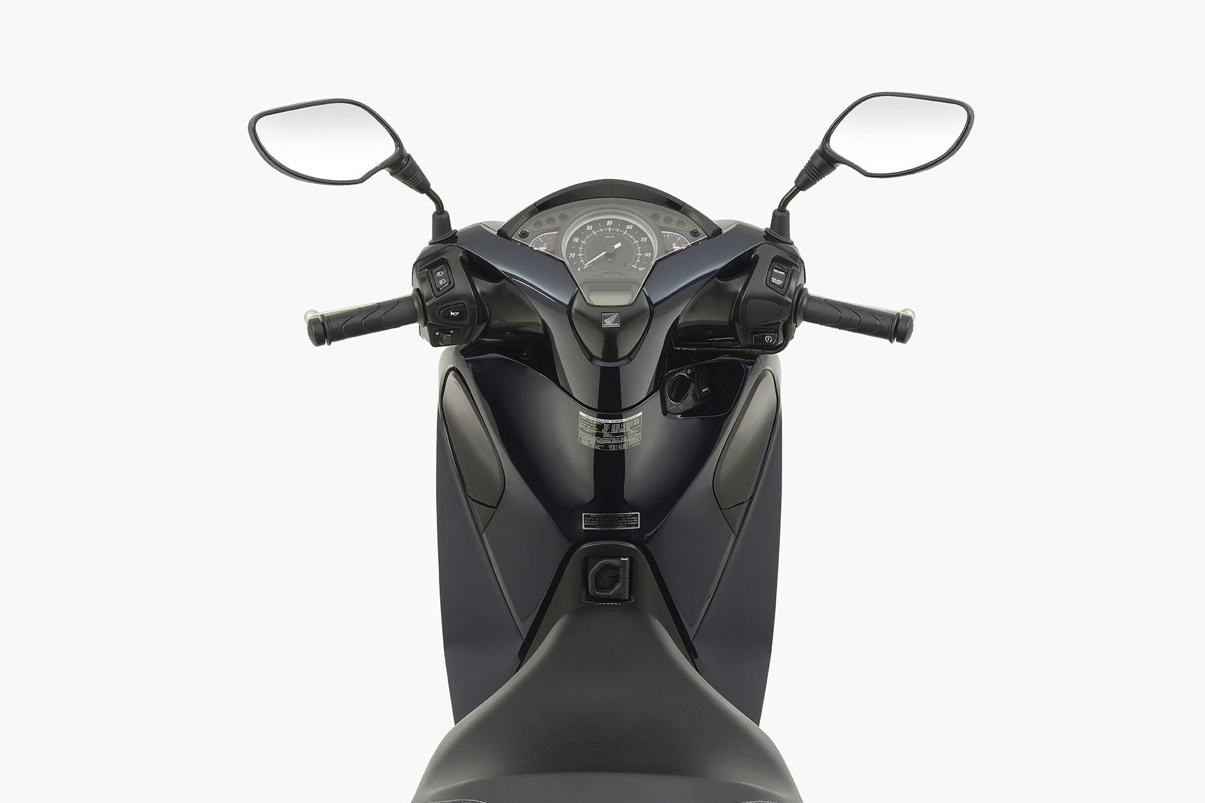 A SH 150i faz sucesso lá no velho continente e ela resgata a tradição do assoalho plano à categoria na Honda. Nela, o piloto senta como se estivesse numa cadeira, com postura reta. Isso permite que a moto tenha rodas maiores, no caso, de 16 polegadas, de liga com cinco raios, calçadas com pneus 100/80 na frente e 120/80 atrás.