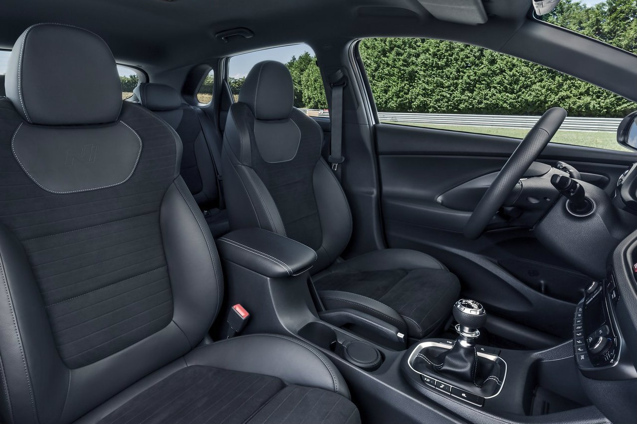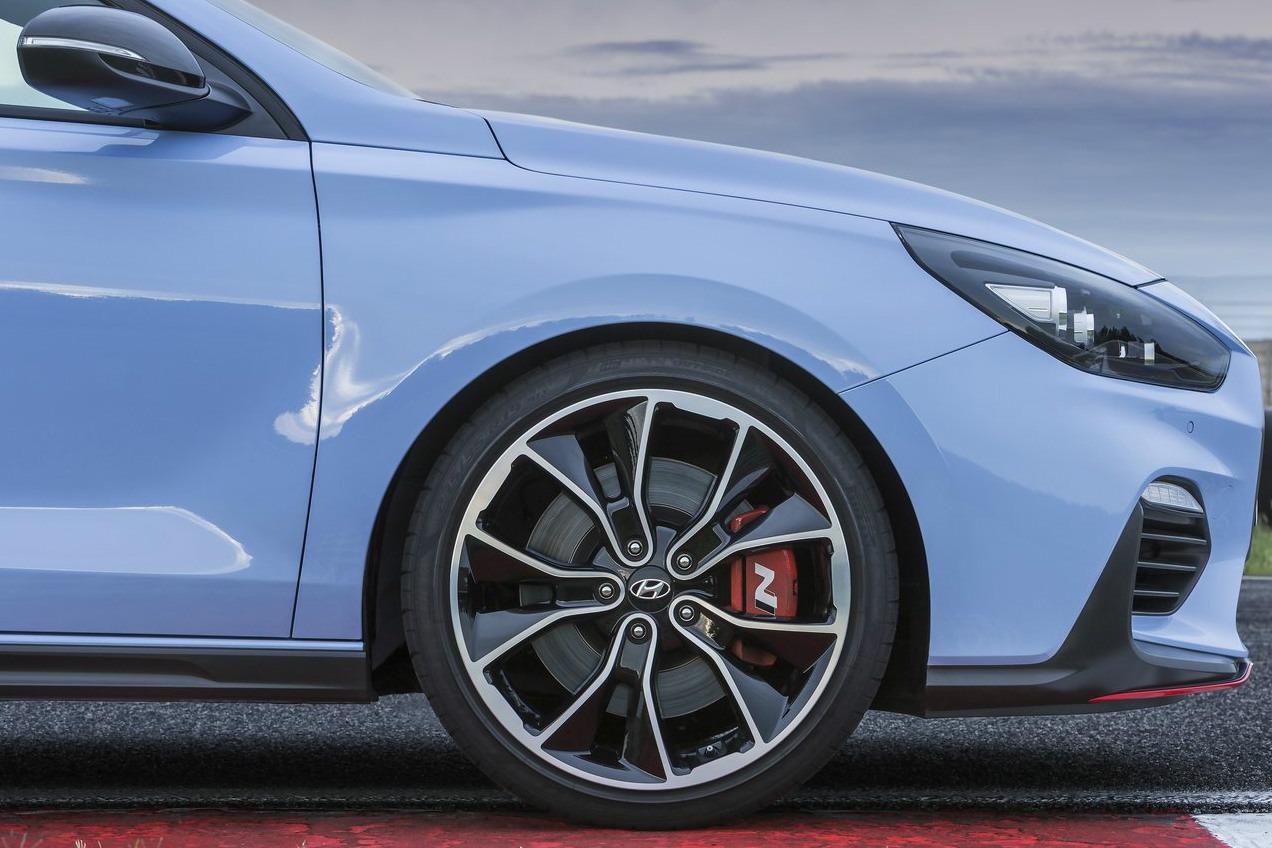 São duas opções de rodas: de 18” e 19”, sendo que a primeira deixa o carro 4 mm mais baixo e a maior rebaixa o modelo em 8 mm e é calçada com Pirelli P Zero 235/35. Os discos de freios são robustos, de 18” na frente e 17” atrás, com pinças vermelhas desenvolvidas pela própria divisão N. Saias e retrovisores pretos completam o visual esportivo do carro.