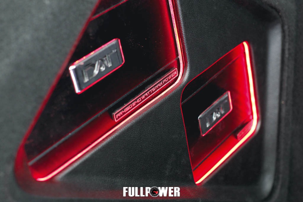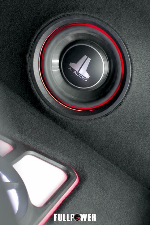 “Como o Ricardo utiliza o carro diariamente, não queria algo que ocupasse muito espaço no bagageiro. Por isso optamos pelo sub JL da linha TW3. Além de ter 10” de diâmetro, seu formato é slim, fininho, e não requer caixas acústicas de litragem muito altas. A selada, neste caso, tem apenas 15 litros e é sufuciente para fazer o sub tocar a partir dos 42 Hz, frequência que atende bem ao gosto musical do proprietário: o rock”, ressalta Gil.
