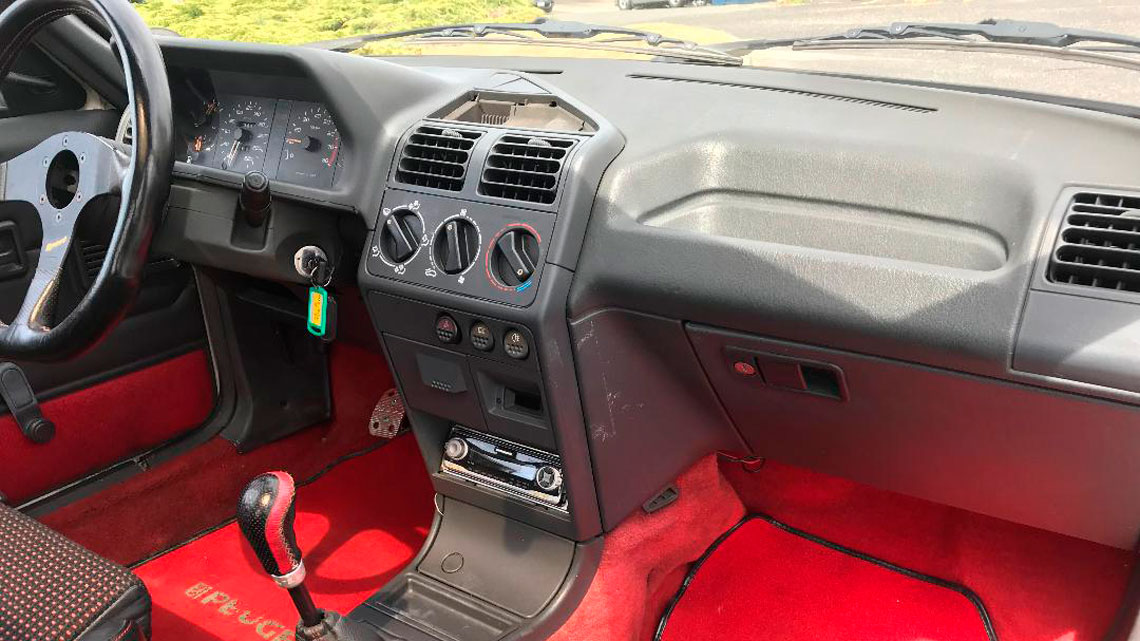 De acordo com o anúncio do modelo, esse Peugeot 205 GTI de 1989 tem quase 140 mil km rodados, mas, como você mesmo pode perceber pelas fotos, não foram todos originais. Aparentemente, o carro passou por uma temporada no japão no final dos anos 1990 e por isso voltou de lá com um toque asiático no visual: esse kit widebody da Dimma que certamente divide opiniões de quem admira o 205. Além desse kit, o hatch ainda tem um sistema de exaustão preparado da HP, suspensão e barras estabilizadoras da Sparco e todas Volk TE37 de 14”.