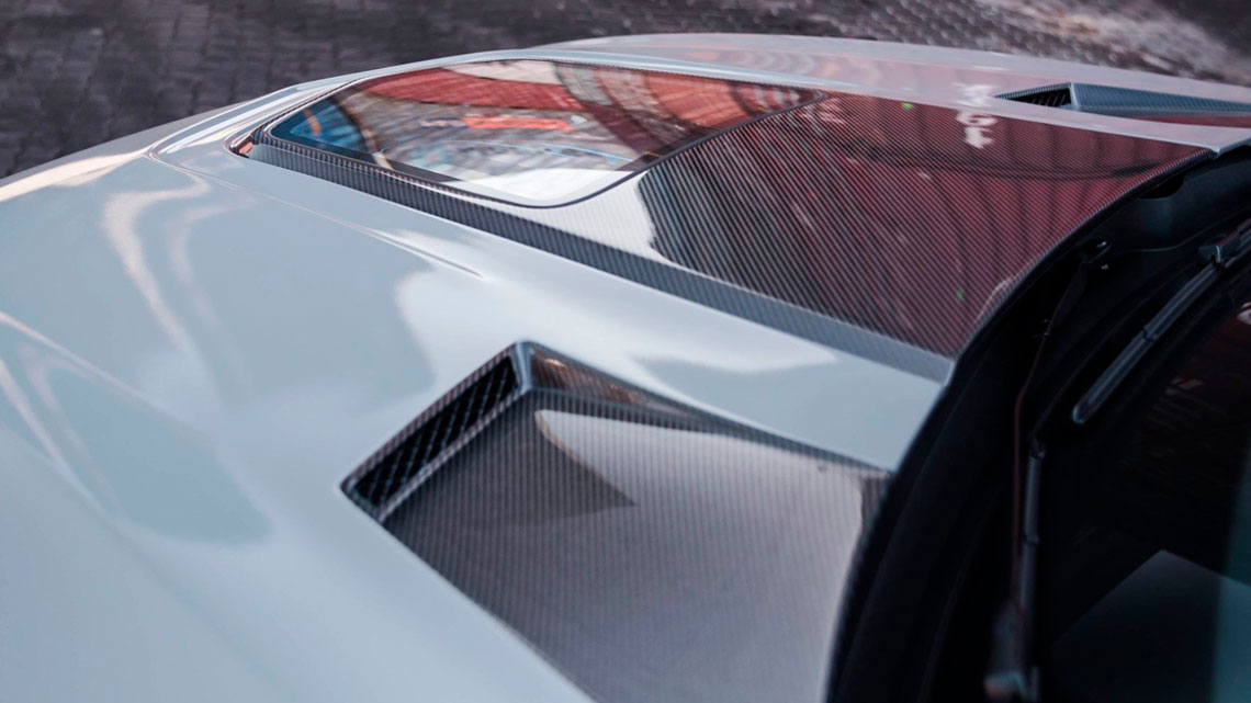 A modificação também ousa no capô, com um peça de fibra de carbono exclusiva com direito a uma parte em vidro para expor o motorzão 4.0 V8 biturbo do modelo. O RS 6 em questão ainda conta com um sistema de exaustão da Armytrix, kit de admissão da AWE Tuning e molas especiais da H&R. Completam o conjunto as rodas de 21” da ADV.1