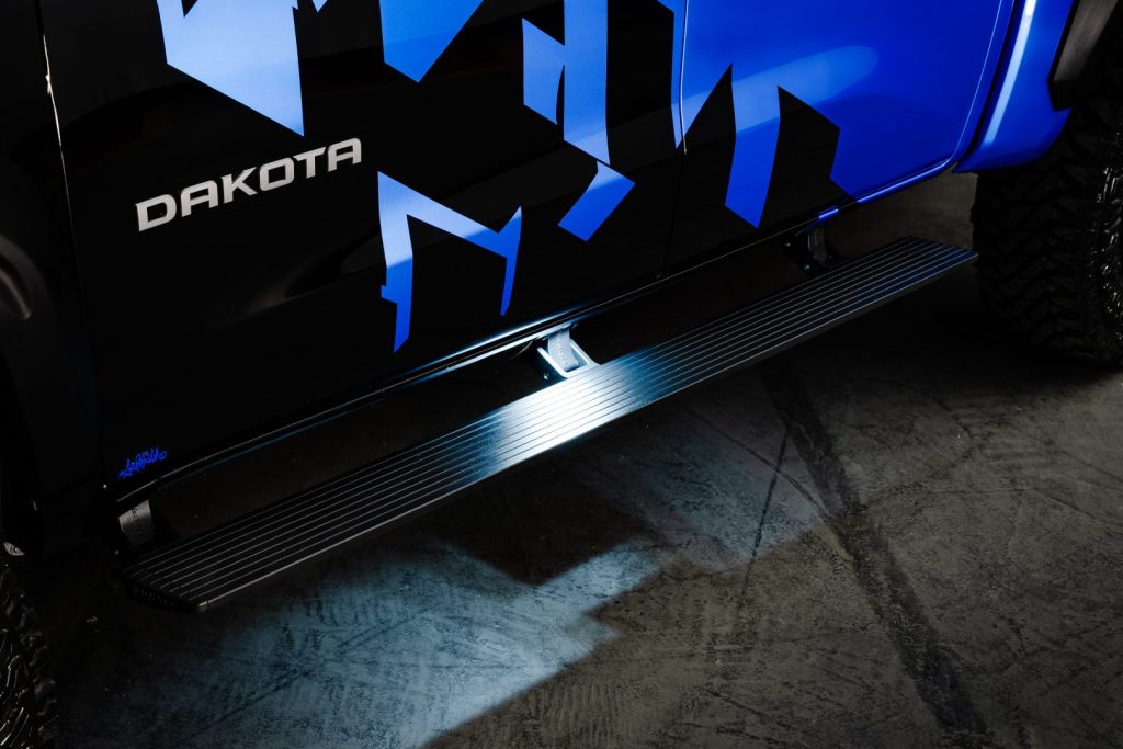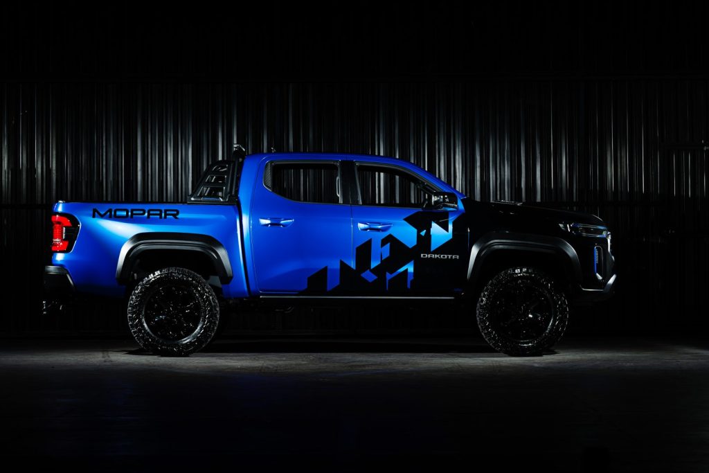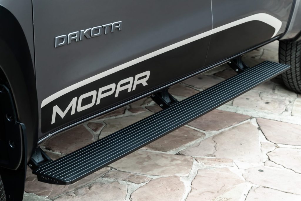 A nova RAM Dakota todo mundo já viu. Mas essa versão diferenciada, com acessórios especias e alguns vendidos pela própria marca e que mantêm a garantia da picape, nem todo mundo teve acesso. FULLPOWER participou do desenvolvimento da picape, a pedido do grupo Stellantis. Nessa versão exclusiva, “moparizada”, a suspensão é FOX, gringa, montada pelos especialistas da Impacto Especiais (SP). Rodas e pneus são diferenciados, aro 18″ – pneus Yokohama Geolander 33 x 12.50 R18.