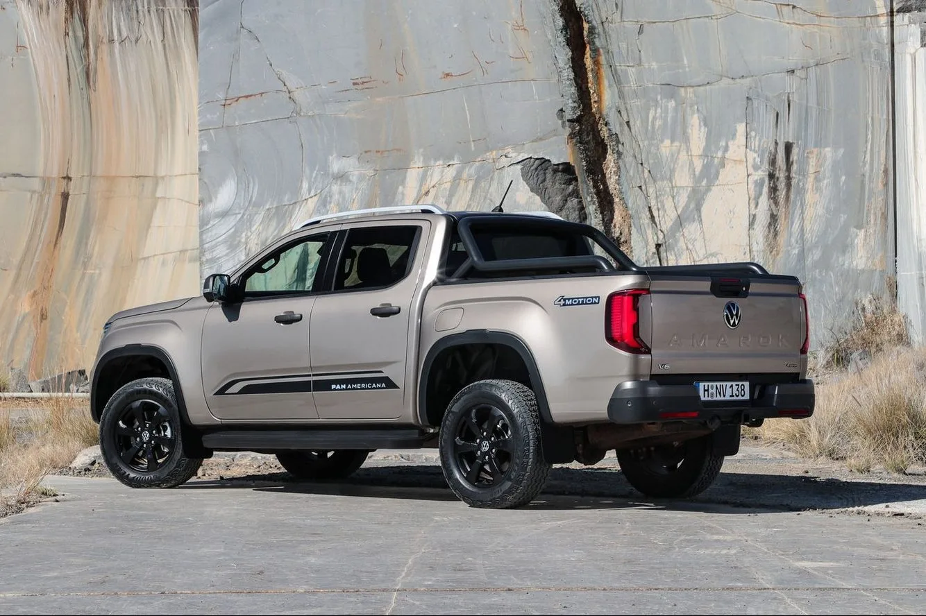 Na traseira, por sua vez, a picape ficou com um tom futurista estreando o novo estilo das lanternas em formato de C, mas mantendo a tampa da caçamba com uma aparência grande e com o logo VW centralizado. A capacidade de carga varia entre 1.000 kg e 1.160 kg, e a de reboque chega a 3.500 kg.